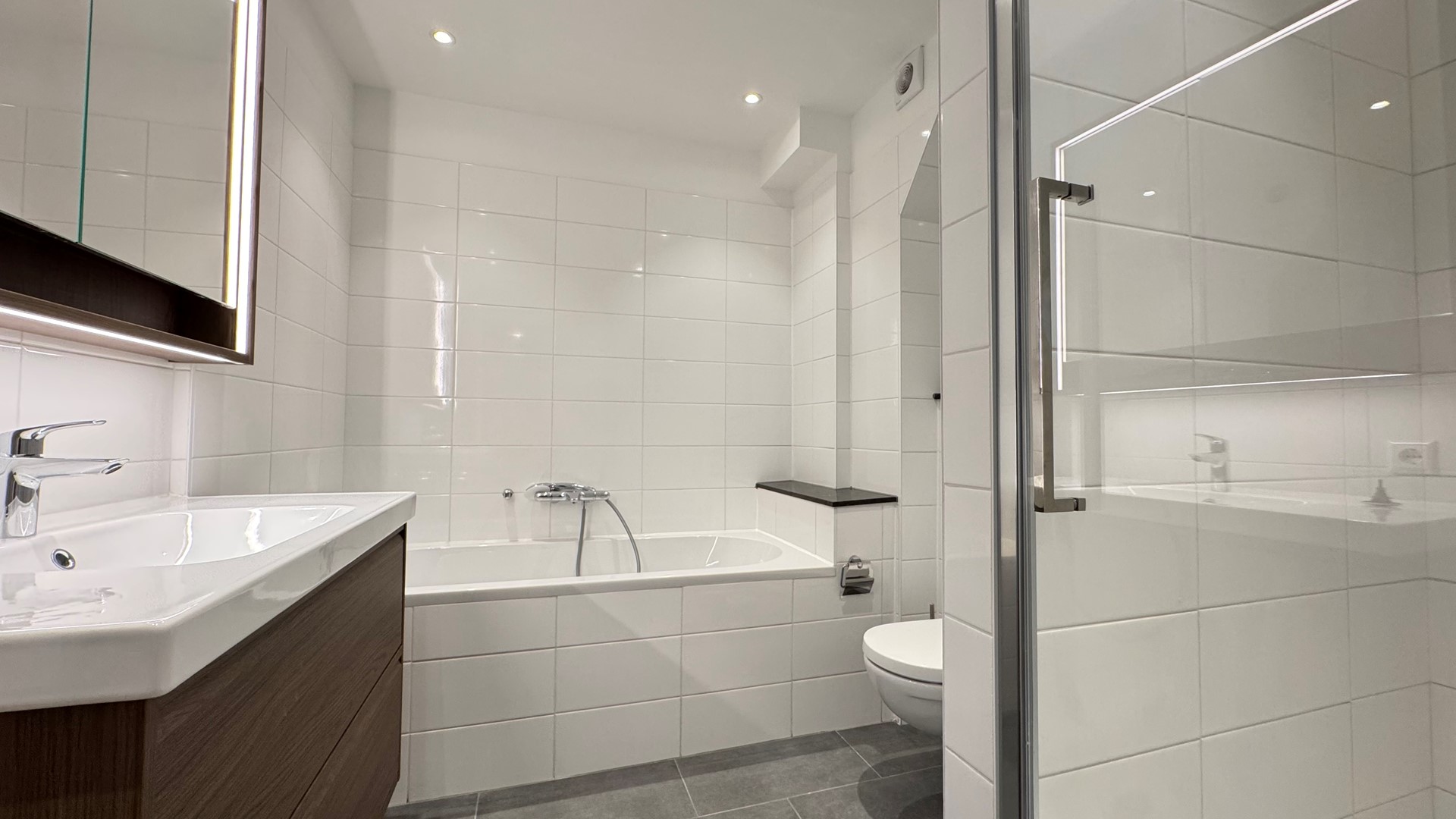 The property has been freshly painted and fitted with a new laminate floor (except for the kitchen and bathrooms). Thanks to the many windows, the apartment enjoys beautiful natural light throughout and a wonderful sense of space and tranquility.