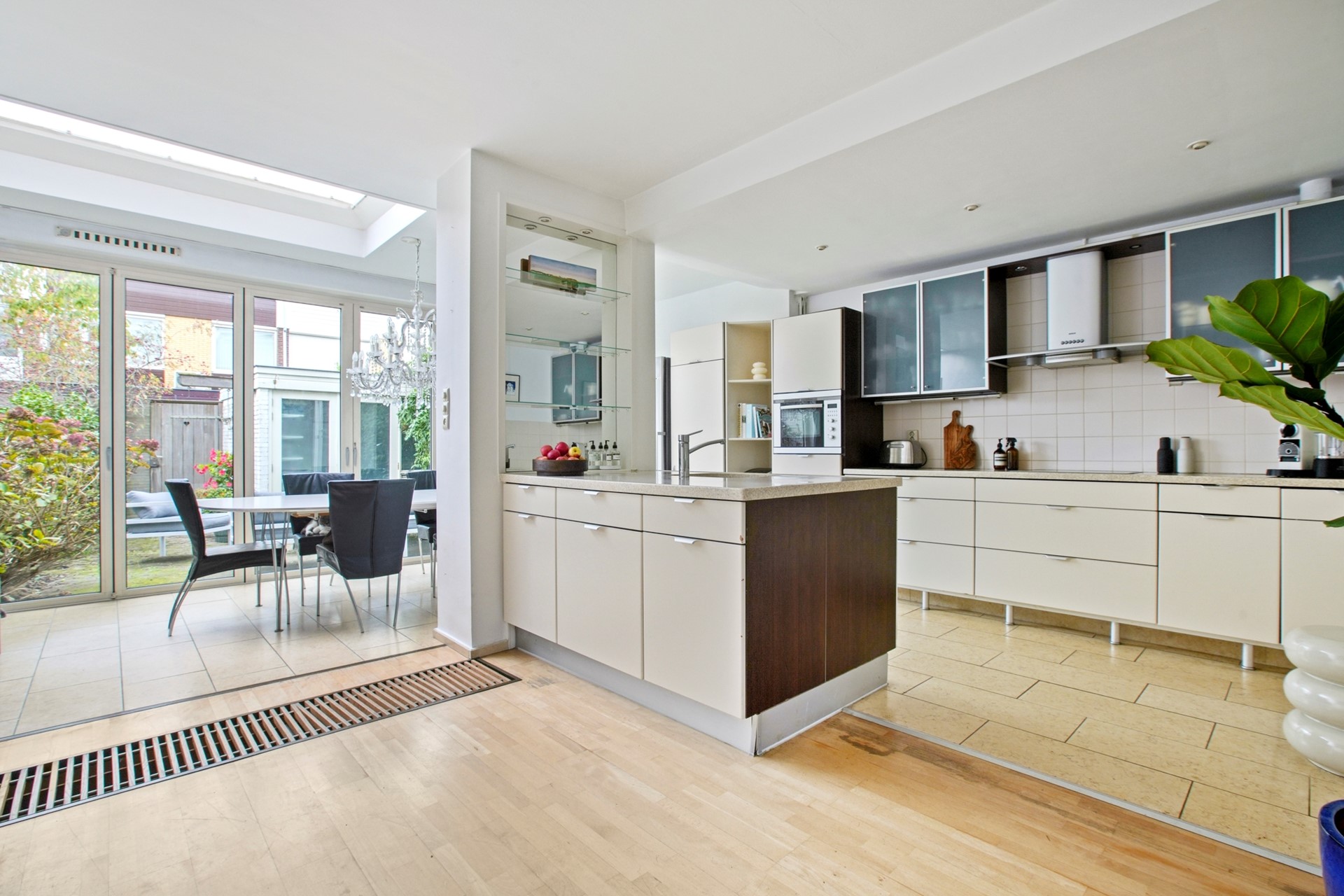 De uitgebouwde serre vormt een absolute eyecatcher en is een heerlijke plek om het hele jaar door te verblijven. Dankzij de grote raampartijen, openslaande harmonicadeuren naar de tuin en de royale lichtkoepel in het plafond geniet u hier van een overvloed aan natuurlijk daglicht. In de zomer haalt u buiten moeiteloos naar binnen en loopt de leefruimte naadloos over in de zonnige achtertuin op het westen. In de winter zit u hier juist beschut en comfortabel, met een prachtig uitzicht op het groen. Deze ruimte is uitermate geschikt als royale eetkamer of extra zithoek en vormt het sfeervolle hart van het huis waar binnen en buiten samenkomen.