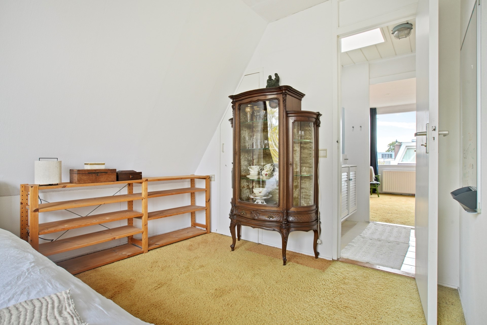 Op deze verdieping bevinden zich drie slaapkamers, waaronder een ruime hoofdslaapkamer aan de voorzijde met walk-in kast. De twee slaapkamers aan de tuinzijde zijn eveneens goed bemeten; de kleinere kamer heeft toegang tot een balkon. De badkamer is uitgerust met een ruime inloopdouche, wastafel en toilet.