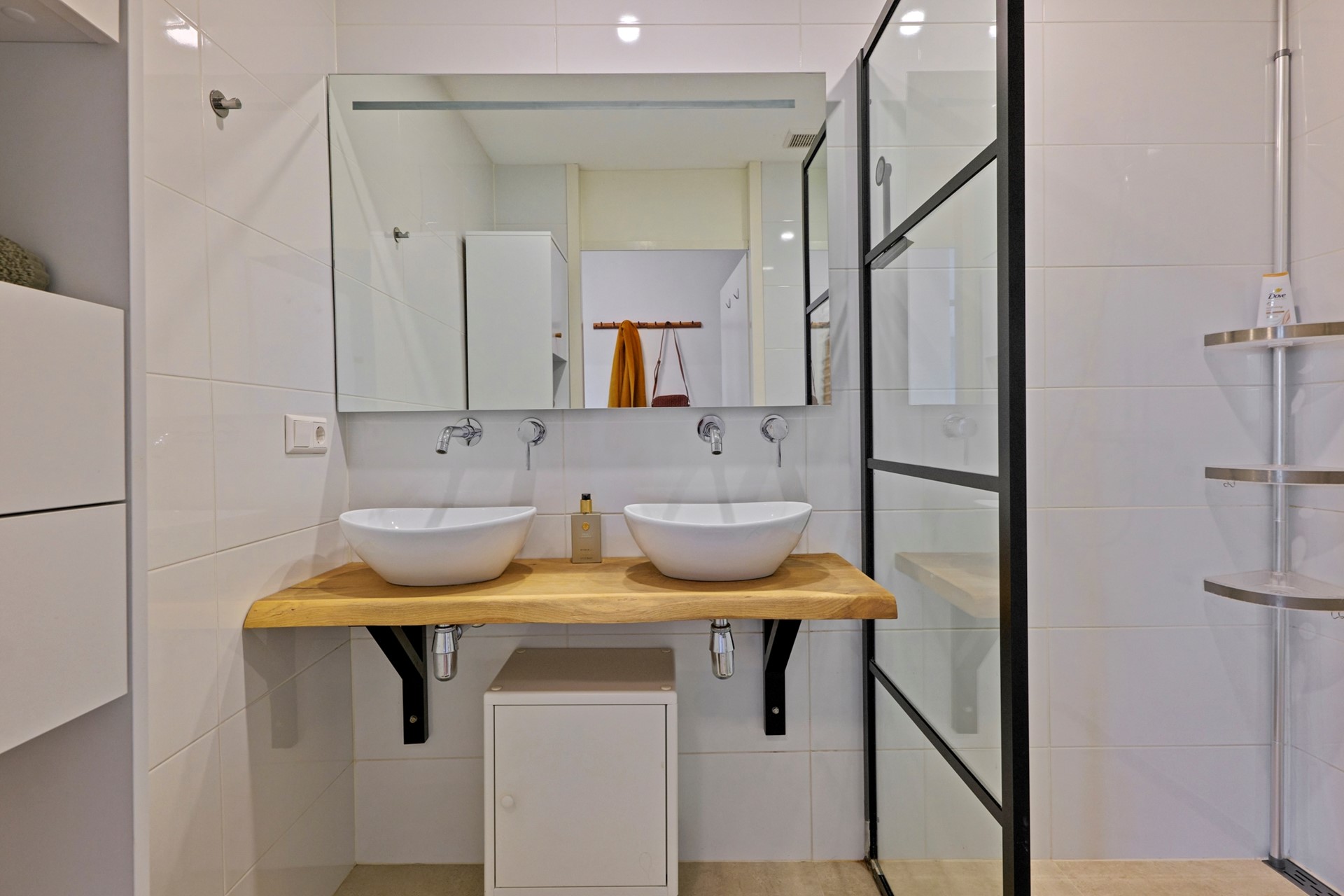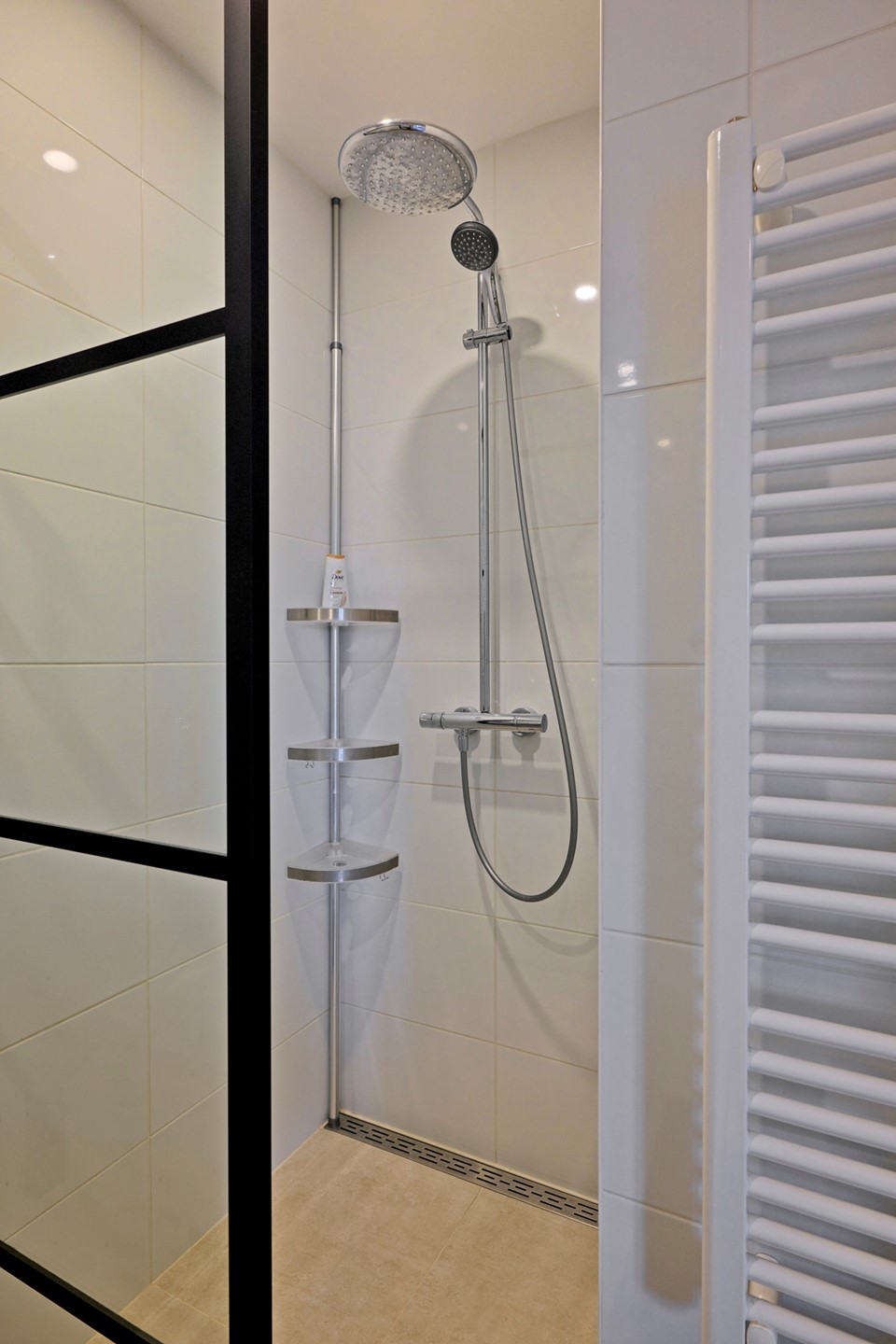 De slaapkamer is ruim genoeg voor een tweepersoonsbed en kastruimte. De badkamer is modern uitgevoerd en beschikt over een inloopdouche en een dubbele wastafel. Het toilet is separaat.