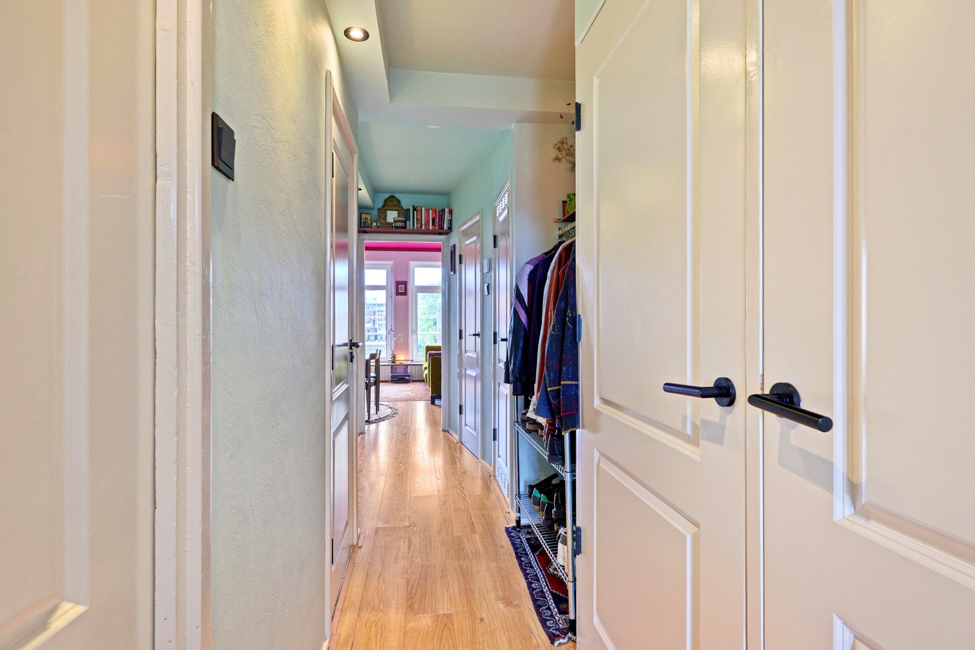 Via het ruime, gemeenschappelijke trappenhuis bereikt u de woning op de derde verdieping. Aan de voorzijde ligt de lichte woonkamer met grote ramen die zorgen voor een ruimtelijk gevoel en veel daglicht.